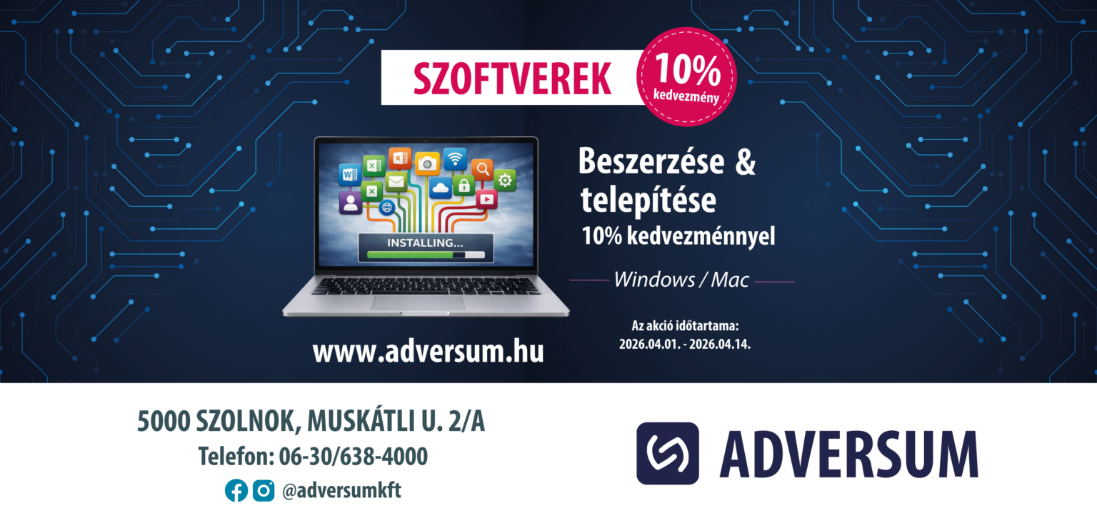 2026. ÁPRILIS - SZOFTVEREK BESZERZÉSE ÉS TELEPÍTÉSE 10% KEDVEZMÉNNYEL!