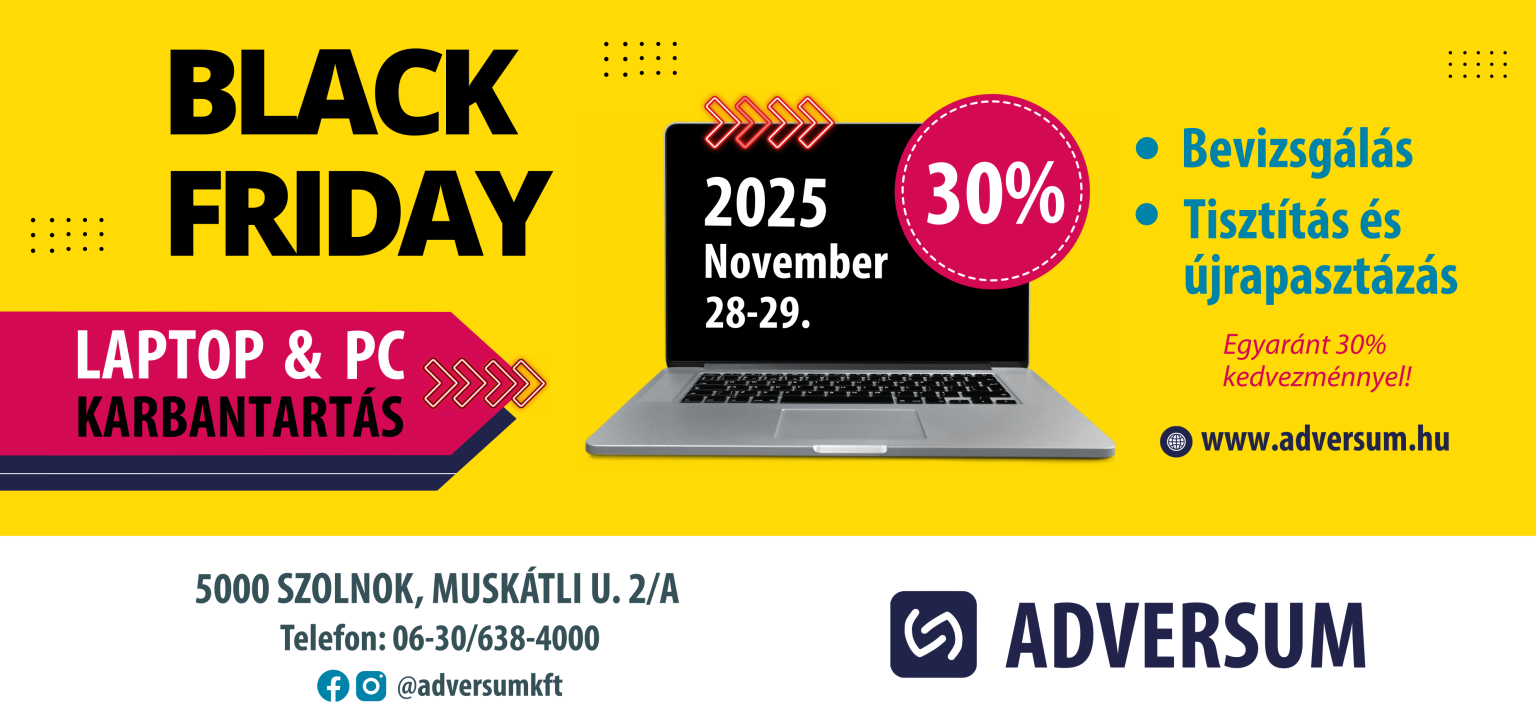 Elstartolt a Black Friday! Ma és holnap (nov. 28–29.) 30% kedvezményt adunk laptopod bevizsgálására, teljes körű tisztítására és újrapasztázására — akár külön, akár egyben kéred! 💻✨